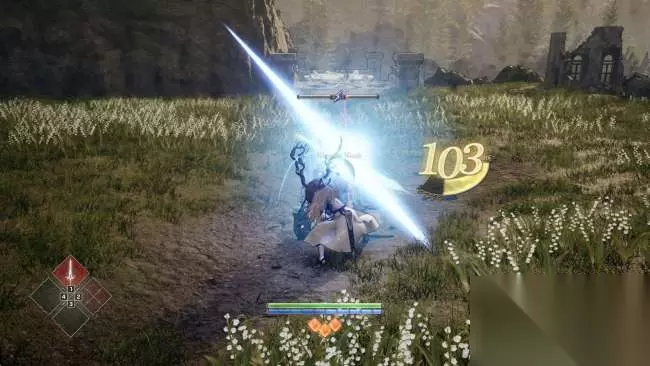 敌人生命条左侧还有一个属性槽,也可以叫失衡槽。 用其弱点属性的攻击伤害敌人就能积累属性槽。 属性槽满后敌人会失衡麻痹,无法动弹,任由你宰割,因此针对敌人属性弱点进行攻击会事半功倍。