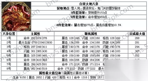 剑灵大地八卦牌属性 大地八卦属性强这的确毋庸置疑,不过你带上以后就一定很强么?如果你是电脑超好,网络延迟低的并且你的操作一流的确可以选择这一款八卦牌,毕竟还是能够不俗的输出能力的。不过蛋疼的地方也在于它加的血量实在是少,全套八卦最多仅增加6000+的血量,而全套蛇蝎帝王八卦则增加了1W4左右的血量,现在很多童鞋都去灵石草原搬砖,你血量没到个2W5+敢潇洒的到处跑么,虽然笔者的召唤也有2W2的血,不过电脑太卡,刷个小BOSS直接掉到的十几帧也是醉了。BOSS全屏技能基本按SS是没反应的,有时候只要拉到仇恨就可以甩键盘了。所以在这种情况下带一身增加血量八卦还是相当不错的。当然你要混搭也是合理的。下面先来推荐几套混搭思路。 八卦选择没有固定思路,一切都看你的操作,电脑配置、网速和作战环境等等因素。可能大神看到这篇攻略会笑,我无伤单刷XX,要那么多血没用,不过我想操作一般的休闲娱乐玩家还是占绝大多数的。不过如果有条件的话收集几套八卦轮换或混搭使用才是上上之选,前提是你有那么多时间和精力去收集。 二、剑灵八卦牌选择思路建议 1、均衡混搭型 1、3、4选用蛇蝎帝王八卦牌,2、5、6、7、8选用大地八卦牌。 以上的混搭思路都是属于比较均衡的搭配方法,充分的利用了两款八卦当中的主属性为暴击、生命、命中的八卦牌,其中不论八卦种类,主属性为命中八卦2块、暴击3块、生命3块。 2、极限暴击型 1、2、3、4 选用蛇蝎帝王八卦牌,5、6、7、8选用大地八卦牌。。 这样混搭则比之前的混搭方法多了一块暴击八卦,暴击数值会有小幅的上涨。 3、耐打血牛型 1、3、7选用蛇蝎帝王八卦牌,6选用大地八卦牌,2、4、5、8选用苍穹八卦牌。(实在整不到苍穹八卦,用螺旋迷宫八卦来替换一下也行。)