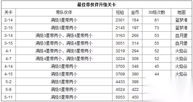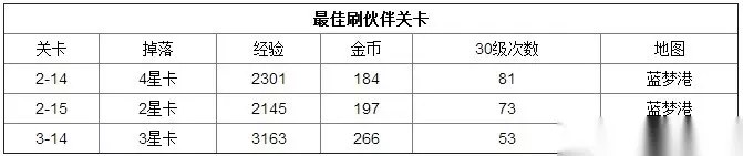 刷2星怪最高的是2-15 螃蟹爆率不是一般的高, 40把钥匙估计能出20个,就是经验少了点,1拖2的时候可以随便刷刷,挺安逸的,无脑到开箱子就行。 2-14会出4星卡,前期可以考虑来这里刷经验,顺便碰碰运气。 3-14我认为迄今3星爆率最高的地方(5-11后面我们 平民也很难打的过去),我刷的不多,高手克雷德可以单刷 最后BOSS放技能就可以,1拖2没问题,没出双倍就刷出过一个3星怪+2个3星武器。 最佳刷经验关卡: