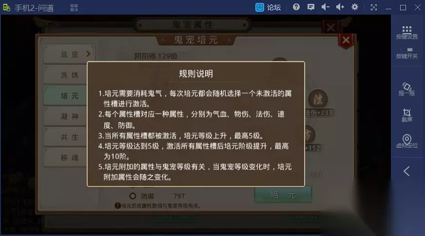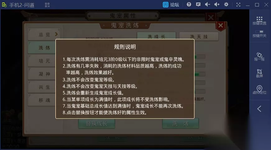 关于幽灵宠物的介绍就到这里为止。总的来说,在所有成长中,幽灵宠物的培元非常重要,不同的培元阶级差异会对共存的阳间宠物产生较大影响,这对于某些等级段的试道和跨服活动而言非常重要。此外,幽灵宠物通过凝神增加的属性将让你在地狱活动中更加游刃有余。