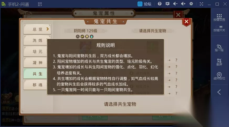 如何获得灵海残卷? 在地下宫殿游戏中,通过完成游戏随机获得。 在地下宫殿行商人处,随机刷新并可购买。 在完成引魂入殿任务后,获得的盒子中随机获得。 在地狱大乱斗中,获得前三名。 何为幽灵宠物的共存? 共存系统是幽灵宠物成长中的一个分支,简单来说就是给阳间宠物增加属性。在介绍共存之前,先来科普一下其他幽灵宠物的培养内容。