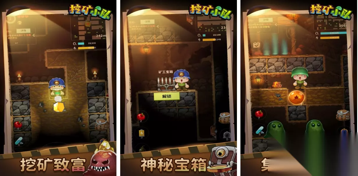 本作是款气氛十分轻松的魔幻主题挖矿类型游戏,放置挖矿的基础操作并无任何的难度,营救矿工和收集道具等超多玩法也值得挑战,在挖矿过程中能触发许许多多的奇遇事件,多种地形也会让大家遇到形形色色的神秘生物,愉快悠闲的挖矿过程会帮助大家舒缓压力,开启宝箱也有机会胡得更多矿脉方面的资源。 高速下载 普通下载 优先233乐园APP下载 4、《挖矿小队》