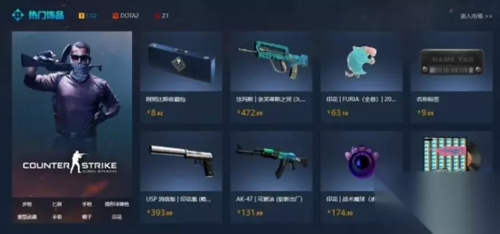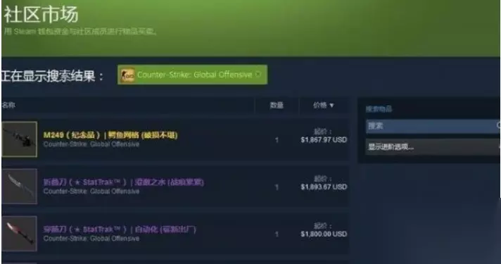 2、Steam市场: 在Steam社区市场购买:打开Steam客户端,点击CS:GO游戏图标,选择“社区市场”选项,然后搜索你想要购买的枪皮。