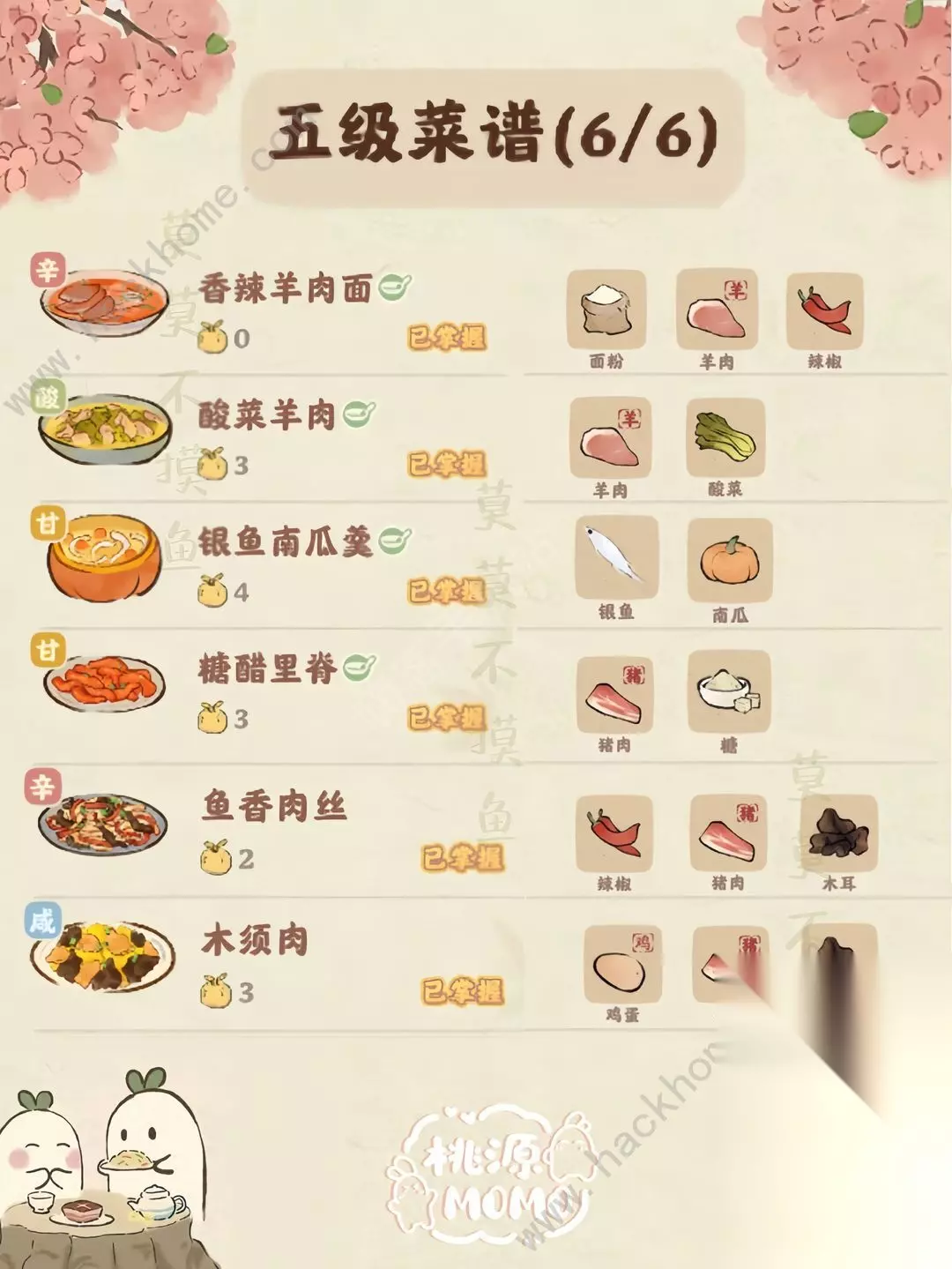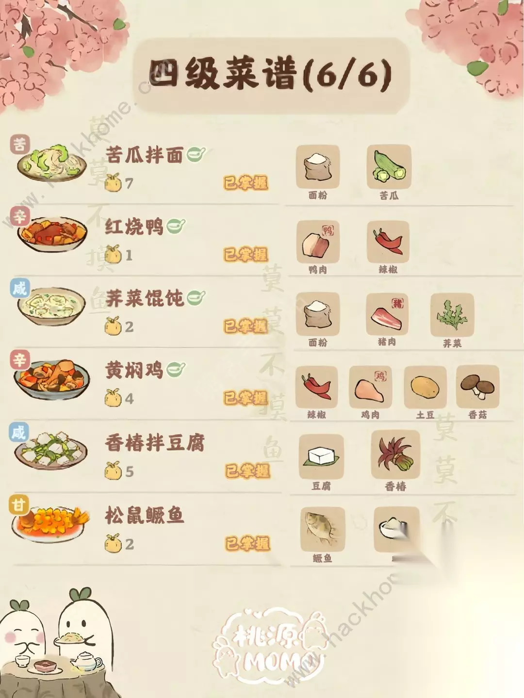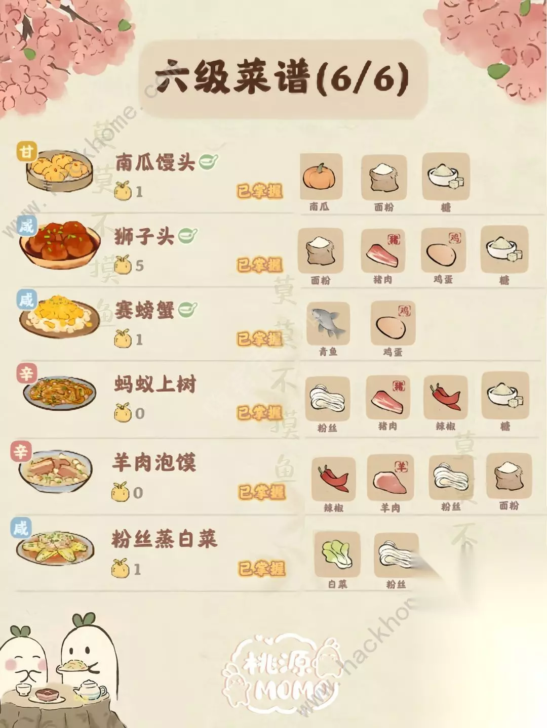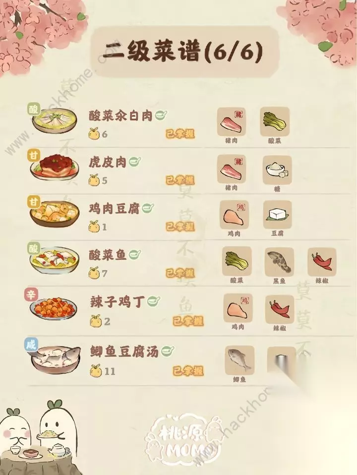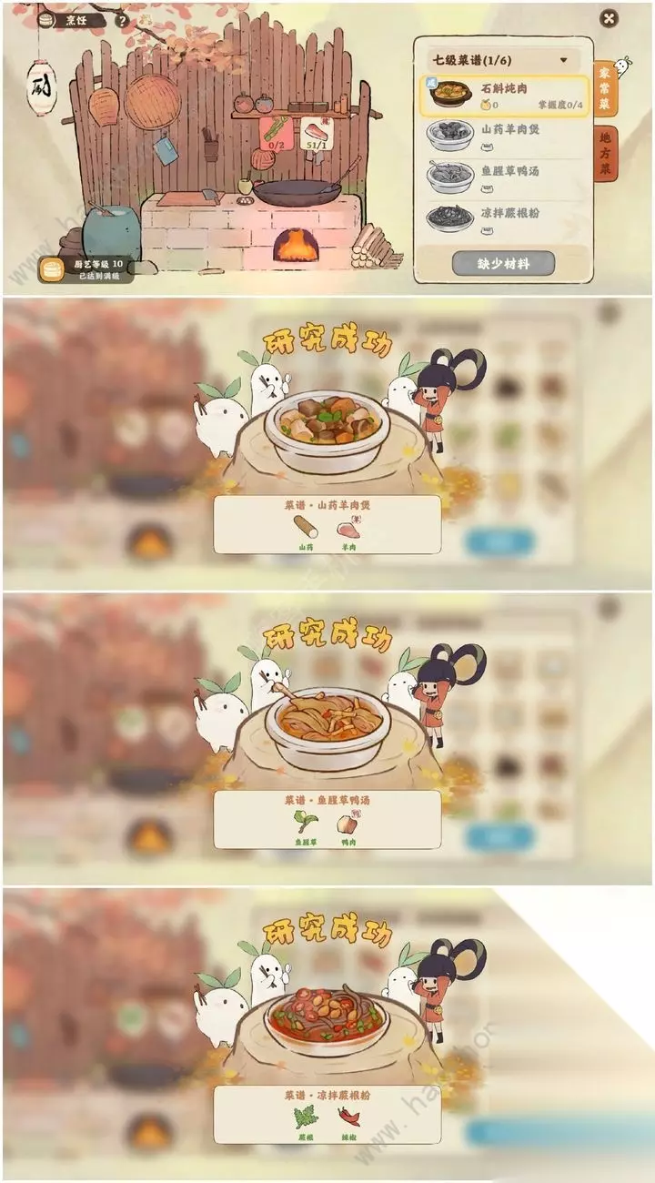 希望大家能够喜欢此攻略,轻松制作家常菜吧! 顺便分享家常菜1-6级配方内容: