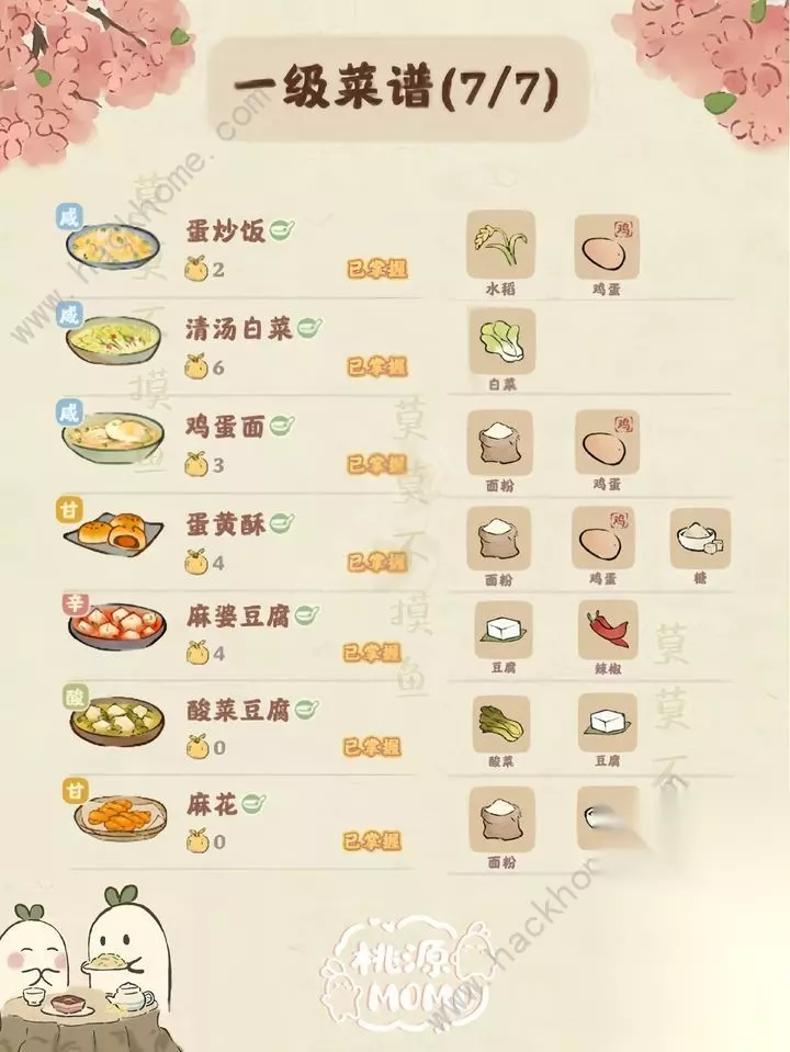 桃源深处有人家家常菜菜谱更新咯,这次带来了七级八级的家常菜料理呢,快来学习制作吧,解锁新烹饪食谱玩转美食哦,接下来就来告诉给大家最新的七八级食谱内容,快来学习~ 桃源深处有人家家常菜七八级烹饪食谱