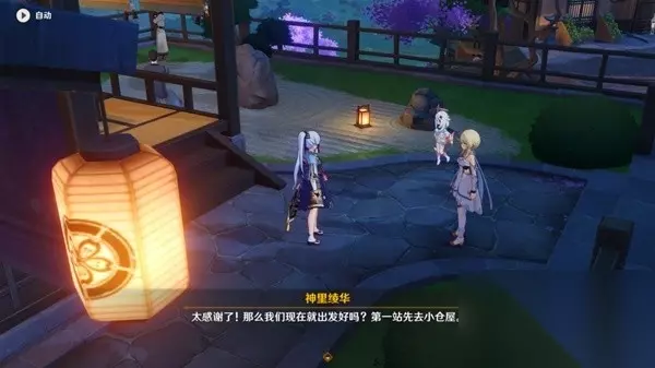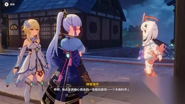 (5)返回小仓屋 回到小仓屋后将丝绸交给店主制作服装,然后和神里凌华一起前往木南料亭用餐