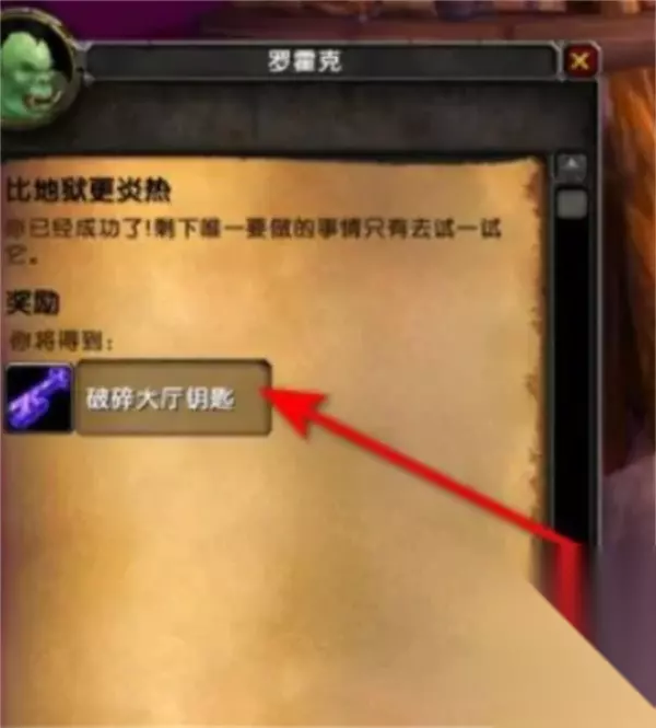 9、返回罗霍克处。对话完成任务,获得破碎大厅钥匙。