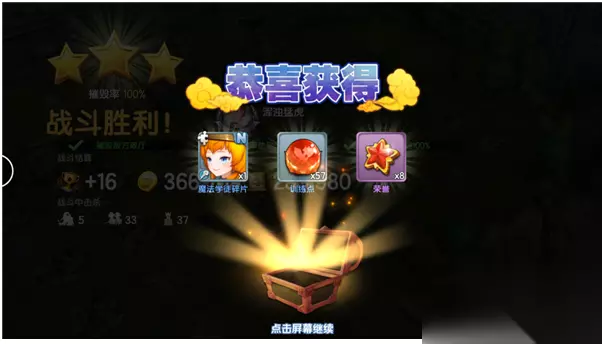 五、产出简介 战斗胜利后有概率可以获得铜箱、银箱、金箱、白金箱等箱子,铜箱是直接开启,而银箱等箱子需要去祭坛那里手动开启。