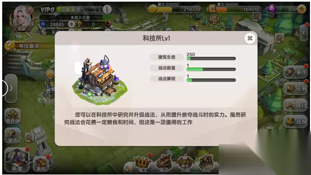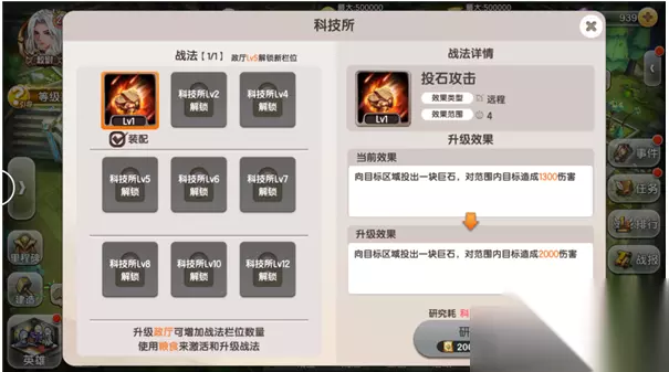 3. 升级“科技所”可以解锁新战法及增加战法携带数量,战法可通过科技所进行升级