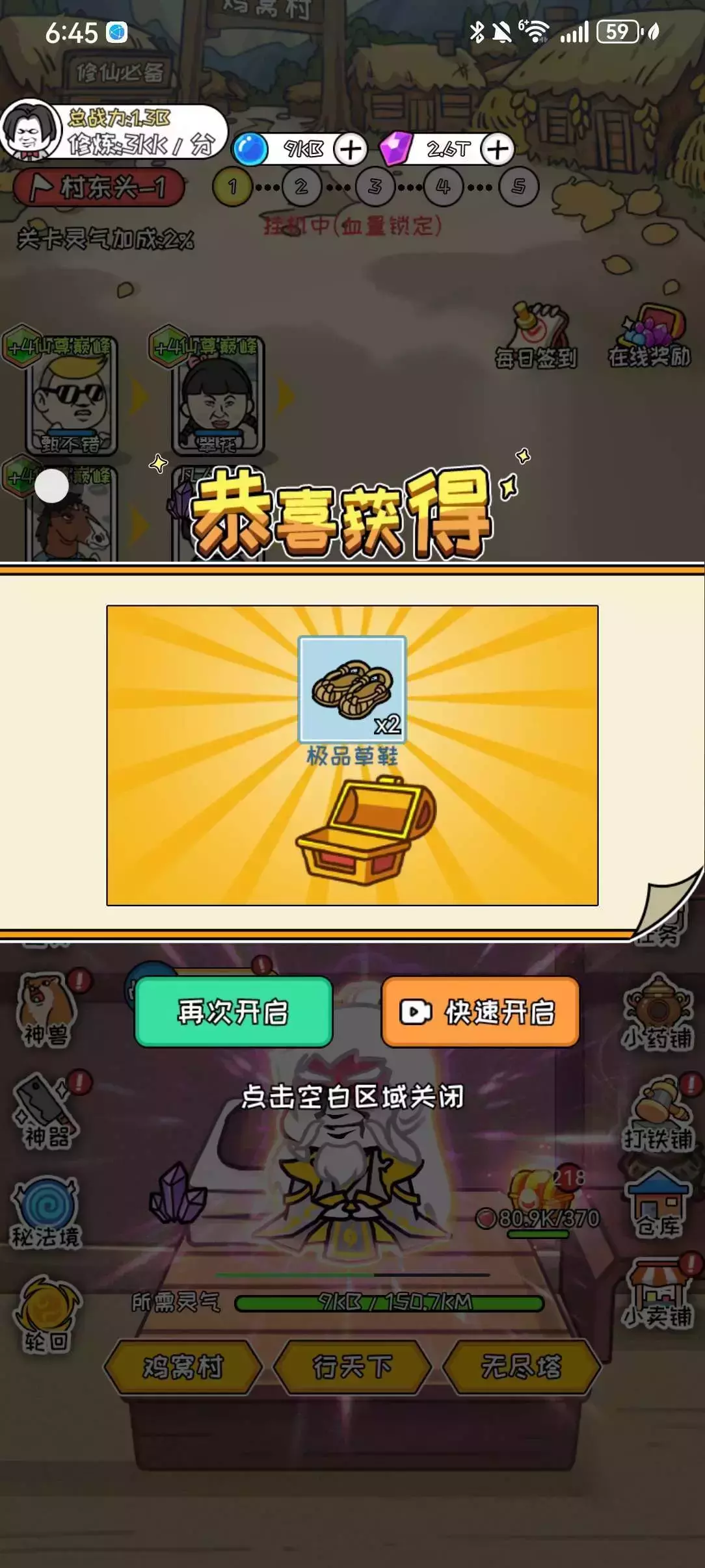 现在我最多可以一次性(一天)轮回8次(因为我到达10KB灵气单位),希望等你们有会员了可以来个狠人速通。💪
