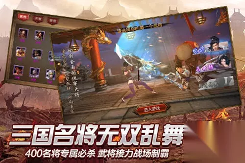 图1 《战龙卸甲》最多可以有三位出战武将,想要追求极致效果,获得更完美的战斗结果,在操作上自然是要多花点心思。玩家可以对操控的武将进行自由切换,在战斗界面左侧点击武将头像即可。每一位武将都有自己专属的连招和技能,根据敌人特点和战斗形式变化,及时调整策略,从而达到事半功倍的效果。《战龙卸甲》400名将接力制霸,游戏灵活程度和战斗的精彩程度全面升级!