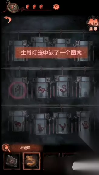 13、玩家在查看轿子里的请柬时可以看到密码线索,点击那个十二生肖灯笼摊,使用火柴点燃如下图的灯笼,可以获得一个老虎布偶;