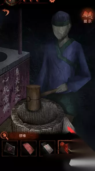 26、之后到第一个场景,点击那个黑白纸人,把梆子放在白色纸人的手上;