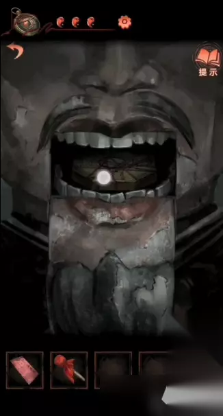 32、点击神像的嘴巴,可以看到一个“奇怪”的道具,点击获得红绳;