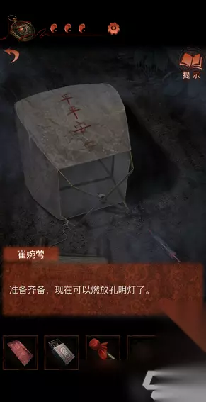 34、然后回到第二个场景,点击右侧灯谜灯笼,将木偶新娘挂在第一个灯笼下面,获得一份报纸;