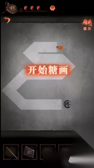 7、然后开始画龙形,这个只要玩家左下角的移动键来控制画就行,该拐弯拐弯,画好之后使用竹签将糖人装起来;