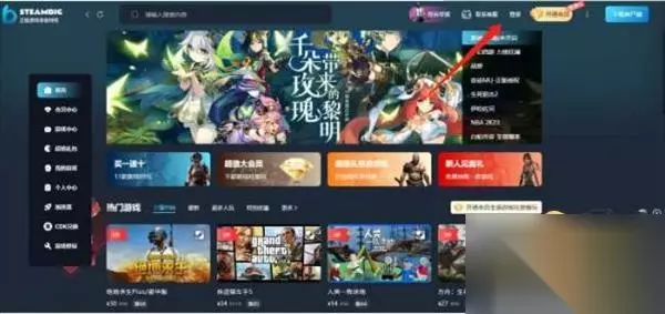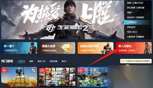 第四步:登录成功之后即可使用平台,可以看到首页中有着非常多的活动。新人可以先选择新人见面礼免费领取一款游戏。 第五步: 1.免费领取游戏后回到首页,可以看到新人买一送十和超值大会员等特惠活动。