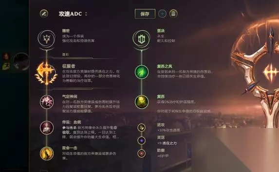 二,尼菈的天赋和召唤师技能 ①基石天赋推荐携带精密系并选择征服者。可能是由于攻击距离极短的原因,尼菈在叠加征服者层数时会被判定为近战英雄,普攻、Q、E和R技能每次均可叠加2层征服者,在下路的对拼中可以快速堆叠层数提高输出能力。随后可以选择气定神闲提供法力值恢复、传说:血统提供续航能力、致命一击增加对残血敌人的输出保证伤害。副系天赋可以选择主宰系中的血之滋味和寻宝猎人。