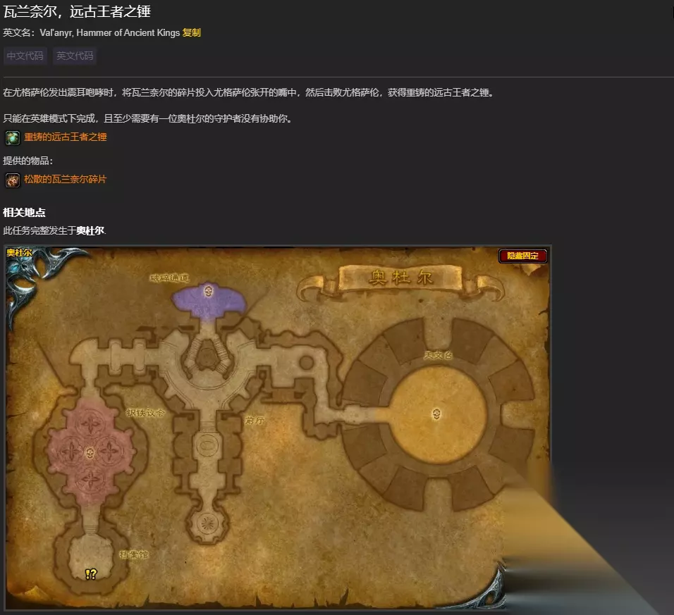 魔兽世界怀旧服奥杜尔橙锤任务怎么做?目前奥杜尔副本已经正式开启了,很多小伙伴想要获得一把奥杜尔橙锤,但是不知道任务怎么做。下面小编就给大家带来魔兽世界怀旧服奥杜尔橙锤任务流程攻略。 魔兽世界怀旧服奥杜尔橙锤任务怎么做 1、首先我们需要收集30片松散的瓦兰奈尔碎片。 2、然后我们在需要在英雄模式丙炔至少需要有一位奥杜尔的守护者没有协助你的情况下将瓦兰奈尔的碎片投入尤格萨伦张开的嘴中。