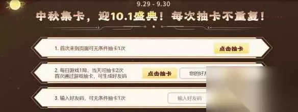 Ymo 二、中秋集卡领好礼Ymo 玩家完成任务抽卡,抽卡兑换武器。Ymo