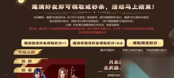 Ymo 四、邀请好友获得武器和角色Ymo 玩家邀请好友可以获得积分,兑换全新角色和武器。Ymo
