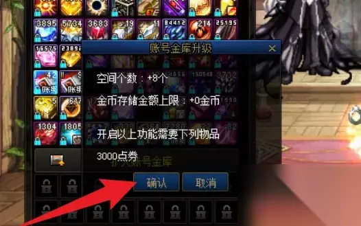 4、点击按钮后,点击确认按钮即可完成账户金库升级。