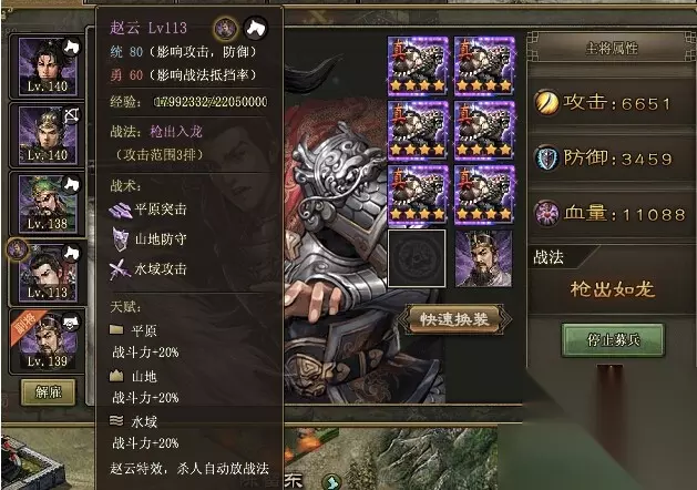 阶段培养策略:循序渐进的力量提升 前期核心选择:稳扎稳打的基石 在游戏初期,刘备绝对是您不可错过的首选。这位仁义之君作为骑兵统帅,不仅统率能力出众,更能率领铁骑在战场上所向披靡。他的技能组合使其成为完美的团队核心,既能输出又可辅助。 黄忠作为远程输出的佼佼者,在推图和副本中表现卓越。他的稳定输出能力能够持续压低敌人血线,为后续战斗奠定坚实基础。 关羽和诸葛亮同样是前期不可多得的良将。关羽如同移动的堡垒,能为队友承受大量伤害;而诸葛亮则是全队的智慧之光,他的辅助技能不仅能提升整体攻击力,还能为部队提供宝贵的续航能力。 中后期强力阵容:爆发输出的艺术 当您的等级和资源积累到一定程度后,赵云和孙策将成为您的新宠。赵云的独特之处在于其击败敌人后可再次释放技能的机制,这让他在连续作战中愈战愈勇。 孙策虽然爆发惊人,但在后期需要与其他武将搭配才能弥补其短板。这时候,一个均衡的阵容就显得尤为重要。