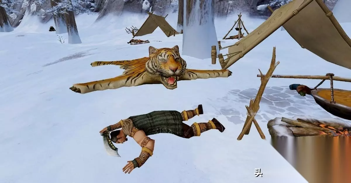 然后去3号点打关中草寇掉落金冠草,喵哥在打怪的时候看到了一张老虎皮,这些草寇不仅偷窃草药还猎杀动物。