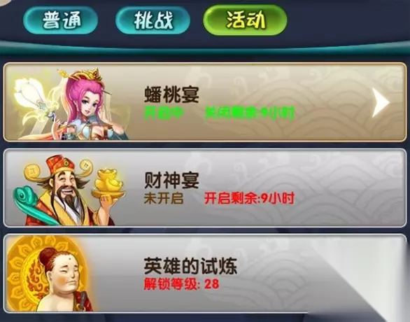图10-《天天来取经》英雄的试炼 3、 英雄的试炼。 玩家等级达到28级以后,可以在活动中参加英雄的试炼,其中最少是英雄碎片,最多就是一张完整的紫卡了!!!