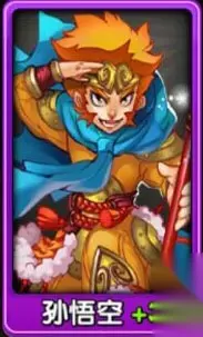 图2-《天天来取经》紫卡孙悟空 一、 什么样的英雄卡是好的? 初级的绿卡,中级的蓝卡,纯提升技能用的灰卡都只能算是基础卡,取经是否顺利,最关键的,是要有紫色的英雄卡!