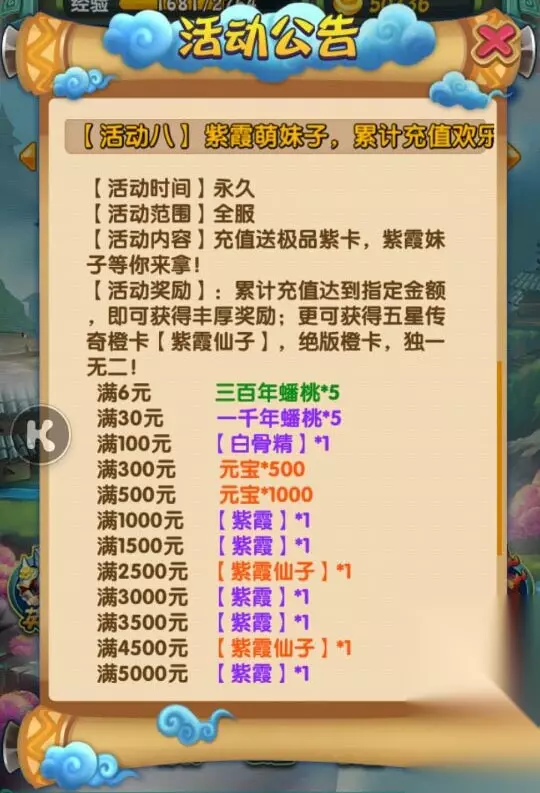 图11-《天天来取经》充值送紫卡 4、 充值得紫卡活动。 游戏中有很多隐藏的福利,其中充值得紫卡就是非常不错的! 最后,还没有加入取经队伍的同学们赶快加入吧!