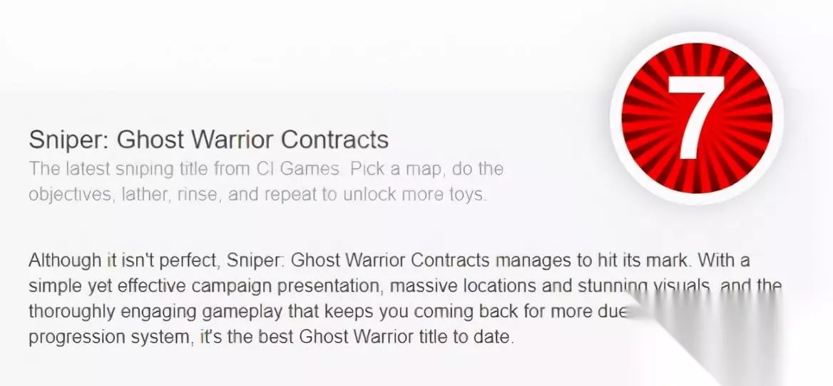 狙击手幽灵战士契约2ign 这款游戏近期各大媒体的分数也都陆续给出,一起来看一下吧。 IGN 7.3分 评价:“狙击手:幽灵战士契约2开局缓慢且乏味,但通过该作复杂的子弹物理学系统你会逐渐成为一名专业射手,同时解锁很多小工具,游戏的进程也将加快。” PC Invasion 7分: 评价:“尽管并不完美,但狙击手:幽灵战士合约还是完成了他的目标。凭借简单但有效的活动介绍,广阔的地理环境和令人惊叹的视觉效果,以及让人沉迷的游戏玩法,这是迄今为止最出色的狙击手:幽灵战士游戏。”
