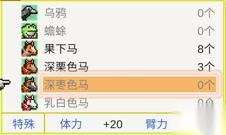 3、衣服就比较随便了,只要防御高的就行。 4、选一匹普通的马。