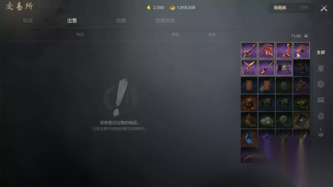 4、 交易所轻松交易,装备购买出售 什么,副本没有刷到自己想要的装备? 别急,玩家们还可以前往交易行花费神石购买。同时在玩家们背包里如有多余的装备,也可将非绑定装备重新挂回交易行出售噢! 交易行装备琳琅满目,任君选择!总有一款适合你!