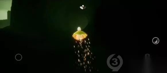 陡坡的尽头是一个黑水管,有两种方式可以到达沉船图: 第一种直接从这个有屏障的水管里进去,但是想要烧掉屏障需要找到足够数量的先祖。 第二种如果没有找到足够数量的先祖可以在屏障前面垂直向上飞,上面也有一个管道。
