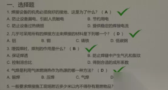 大多数职业测试题答案大全 厨师 会计 电焊工 汽修工 1.烹饪原料食用价值的高低主要取决于三个方面:营养性、可口性和什么?(B) A.价格性、B.安全性 C.季节性、D.地区性。 2.茎菜类原料去皮后应该做什么防止变色?(A) A.浸泡在水中、B.快速焯水、C.浸泡在油中、D.立即烹饪 3.有鳞鱼剖腹时要注意部位和深度,主要目的是什么?(B) A.保持鱼的形状、B.防止胆汁破损、C.防止鱼肠割断、D.防止鱼皮开裂 4.禽类原料的开膛方法有:肋开、腹开和什么?(D) A.前开、B.后开、C.胸开、D.背开 5.加工后的原料在零下18度到零下15度的环境下可保存多少天?(B) A.60、B.180、C.200、D.300 6.冷藏鲜蛋时的温度最低不可低于多少摄氏度,否则鲜蛋会被冻坏。(B) A.0°℃、B.-2℃、C.-4℃、D.-6℃ 7.流水解冻的缺点是什么?(D) A.时间较长B.颜色变黑 C.水分丢失多D.营养素损失多 8.下列牛肉中,品质最佳的是哪一个?(A) A.耗牛肉、B.黄牛肉、C.水牛肉、D.奶牛肉 9.下列面粉中面筋质含量最高的是哪一个?( C) A.普通粉、B.标准粉、C.富强粉、D.糕点粉 10.用大豆加工豆腐等豆制品,主要是利用了大豆中的什么?(C) A.淀粉、B.脂肪、C.蛋白质、D.纤维素 1.所谓的毛利实际是(C) A.销售收入减去采购;B.销售收入加上期末存货 C.销售收入减去销售成本;D.销售收入加上销售成本 2.某企业盘亏机器设备一台,经上级批准后,应借记账户为 (B) A.本年利润,B.营业外支出; C.其他应收款;D.管理费用 3.平等登记的记账原则可以概括为(D) A.方向相同;B.期间一致; C.繁简一样;D.金额相等 4.会计确认的标准不包含(C) A.可定义性;B.可计量性 c.可比性;D.可靠性 5.下列不属于采购费用的项目有(D) A.材料买价;B.运杂费 C.途中合理损耗;D.采购员差旅费 6.下列项目中属于会计科目的是(D) A.机器;B.在产品 C.产成品;D.原材料 7.下列各项中,应计入产品生产成本的是(D) A.营业费用;B.管理费用; C.财务费用;D.制造费用 8.会计是以什么为主要计量单位,对企业和行政、事业单位的经济活动进行核算和监督的?( B) A.实物;B.货币; C.生产力;D.劳动力 9.会计基本职能是 ( c) A. 计划和核算;B.预测和监督 C.核算和监督;D.决策和监督 10.下列各项中不属于期间费用的是 ( A ) A.制造费用;B.产品销售费用; C.管理费用;D.财务费用