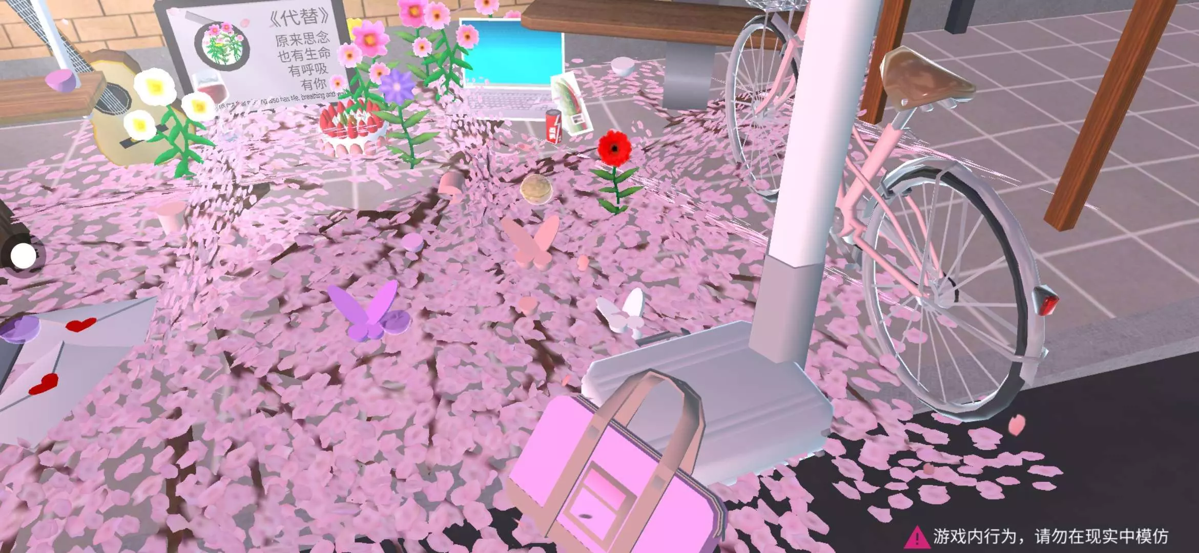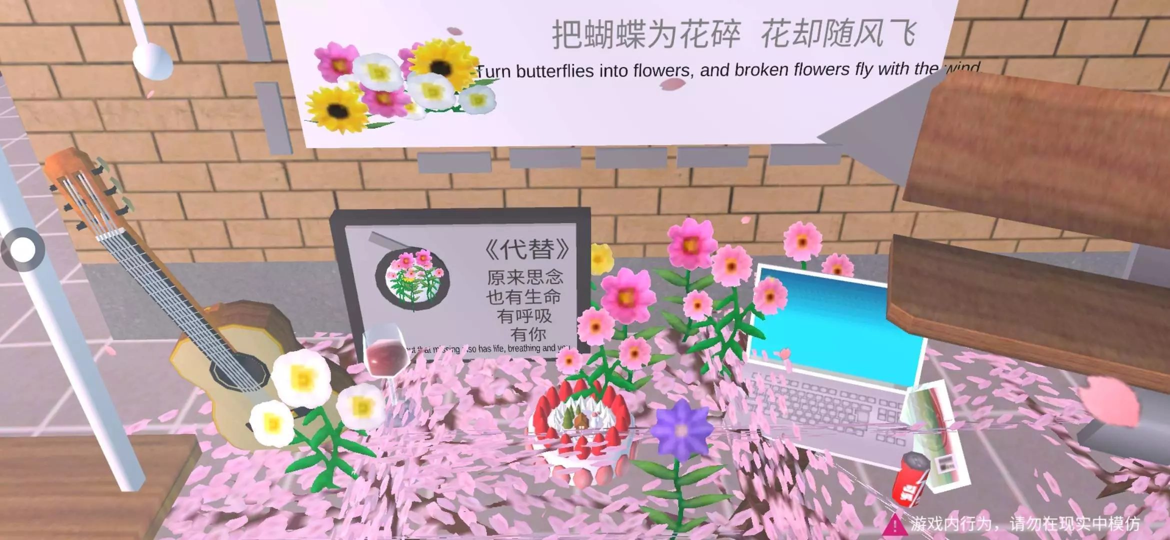 蝴蝶🦋装饰翩然,与落花🌸相映,似是将破碎的情愫也舞成了诗📸 笔记本电脑🖥️屏幕蓝光幽幽,在这浪漫又略带伤感的场景里,透着一丝现代的疏离与无奈🌱 花朵🌺簇拥,色彩缤纷,却难掩那藏在美好表象下的淡淡怅惘。