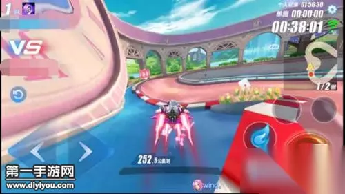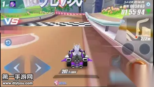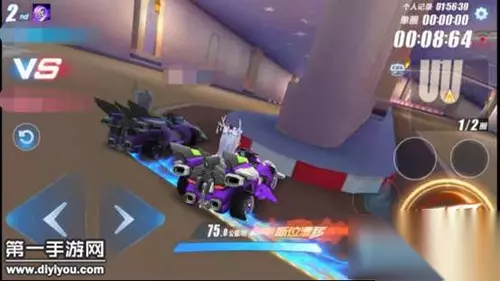 4.落地后使用氮气卡冲至U型弯道处,使用断位漂移,过弯后第一圈不要使用氮气卡,而是等下个弯道冲出后使用加速卡接CWW喷。第二圈则直接使用氮气卡冲至终点。 使用此方法该图成绩目前可以达到2分以内,本次测试使用的赛车为天启,对于不漂移平跑转向方面有着天然的优势,速度会稍微快些,但相信大家的创意以及技术是没有上限的。