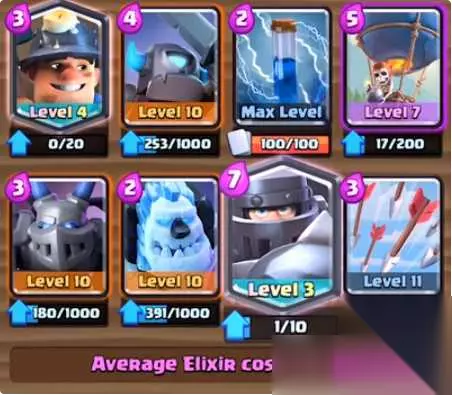 最佳气球兵搭配卡组又开始热门起来了,这套超级骑士气球兵阵容组合的卡组也是非常给力的,玩法也比较多变,能主动出击打推进,也能防守反击。在初期的时候超级骑士尽量用来打防守,因为圣水消耗比较高,如释放过早,被对手利用低费卡牌简单化解的话就太亏圣水了,可先使用戈仑冰人和矿工骚扰对手,探探对手的卡牌,然后再看情况使用超级骑士和气球进行强势推进,非常不错的卡组哦! 超级骑士卡组2、超级骑士矿工组合