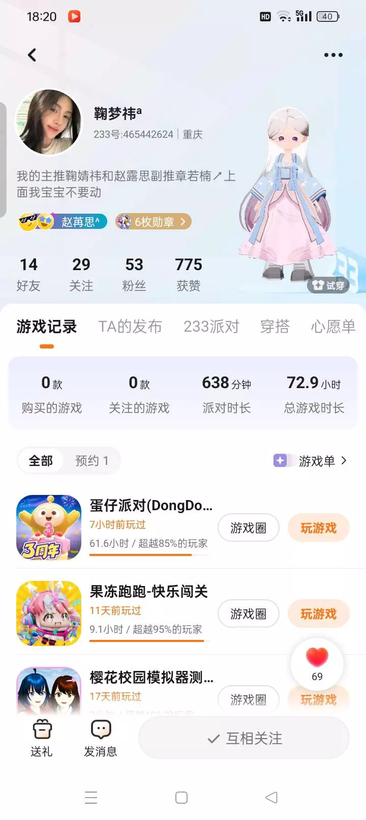可以关注一下他吗?他人非常好的。你关注他,他也会关注你,他可以互关,也可以给你的视频点赞他人很温柔。