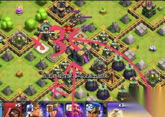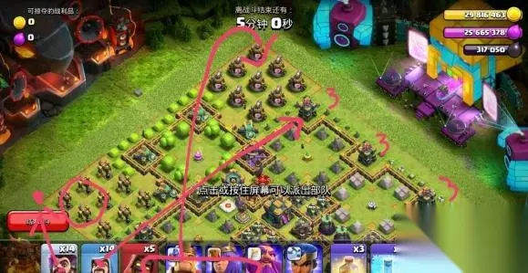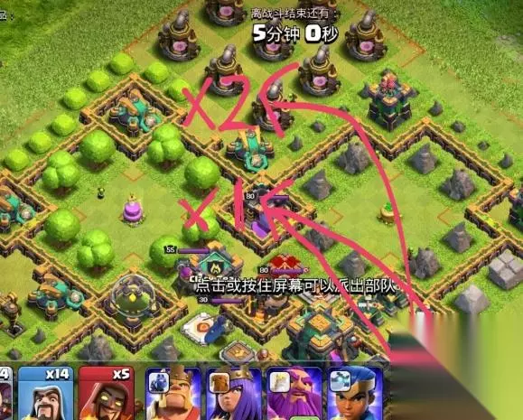 最重要的是被大本打的时候隐身是否给到王了,两冰冻援兵和女王,超法清完援兵就不需要保了,爆本男王就够,记得给闰土留一个冰,最后疾速给剩下的兵赶路打左侧两投石。四个陷阱区分别两法师,最下面的别探!!!全是骷髅!!!