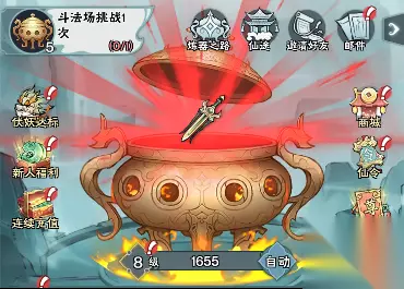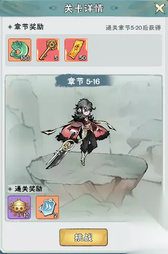 冒险: 剧情关卡(PVE)。每关获得天地宝藏和灵符。每个章节可以获取不同的奖励!