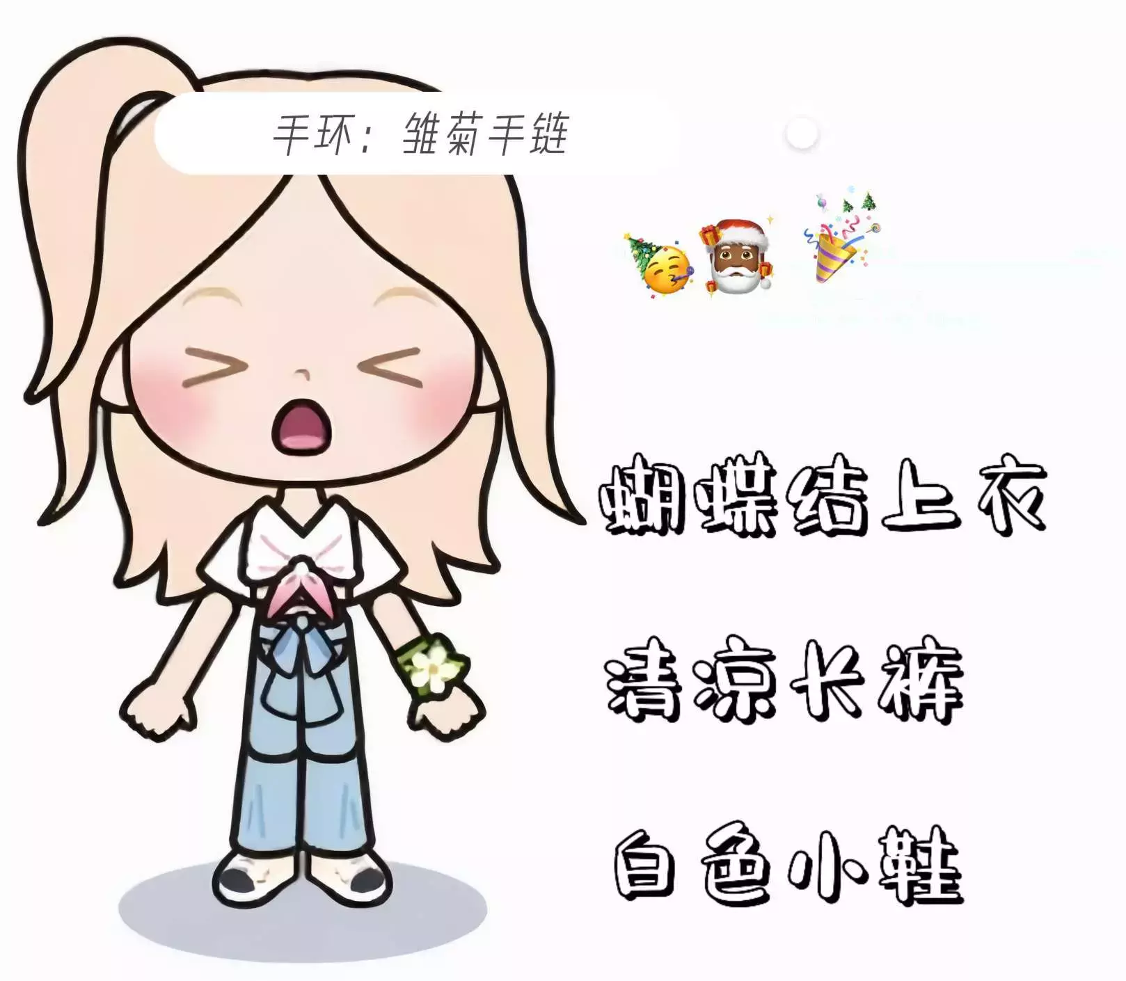 这一套写得非常的活泼灵巧!阔腿裤在脚上显的很灵!头上的蝴蝶结又增添了几分好看 ˃̵ ֊ ˂̵꧞
