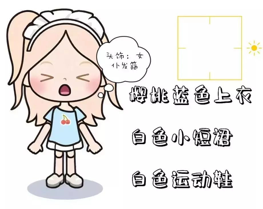 这一套呢非常的甜美,上衣和裙子搭配的十分恰当,加上一双小白鞋像是美人出街!头上的发箍像是很顽皮~