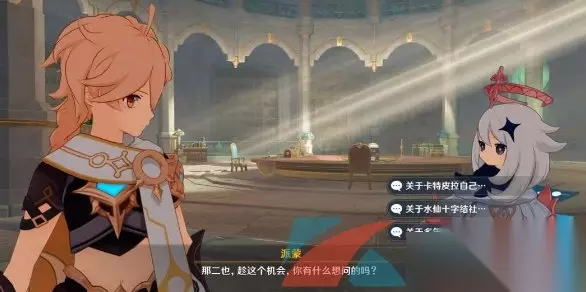 3、线索收集完成后和NPC卡特皮拉进行对话,了解多年前的事情,对话可以自由选择;