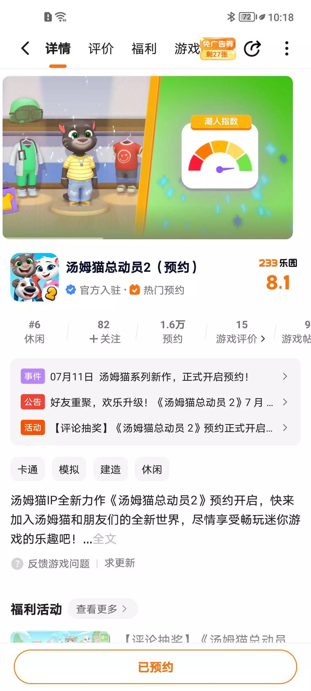预约抽奖品