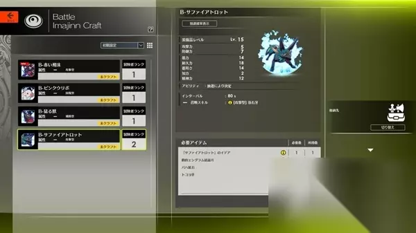 若战斗评分不足,可以透过製作 10 等武器(雷属性),来提高分数,装备新的战斗或强化想像 Battle imaginn、Enhance imaginn 也能提升,但是提升不少