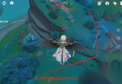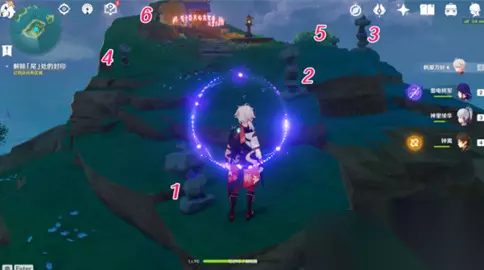 3、之后我们带着雷种子按照如图所示的方法点亮所有石柱。