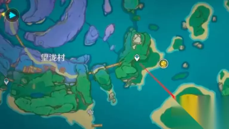 1、接取任务后我们来到图中标记的岛上。