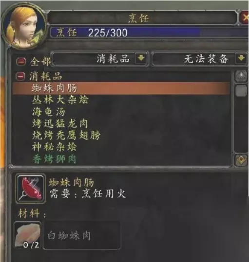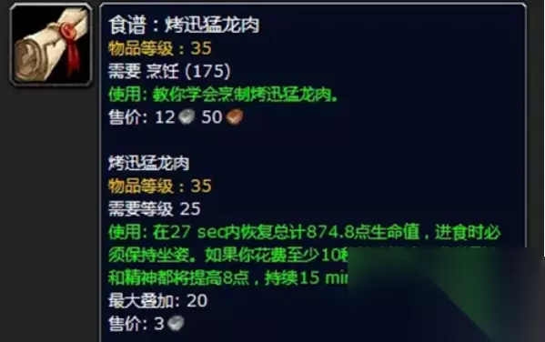 魔兽世界烹饪225怎么升级快 升级技巧: 1 – 40: 香料面包 将面粉和甜香料混合在一起制成。 40 – 80: 熏熊肉或香辣狼肉 [联盟] 80 – 130:水煮蚌肉和蟹肉蛋糕 使用蚌肉和清凉的泉水或蟹肉制作。 [部落] 80 – 90:熏熊肉 继续使用熊肉制作熏熊肉。 90 – 130: 掘地鼠炖肉 烹饪掘地鼠。 130 – 175: 美味煎蛋卷 将迅猛龙蛋煮美味的煎蛋卷。 175 – 225: 烤迅猛龙肉 将迅猛龙肉烤成。